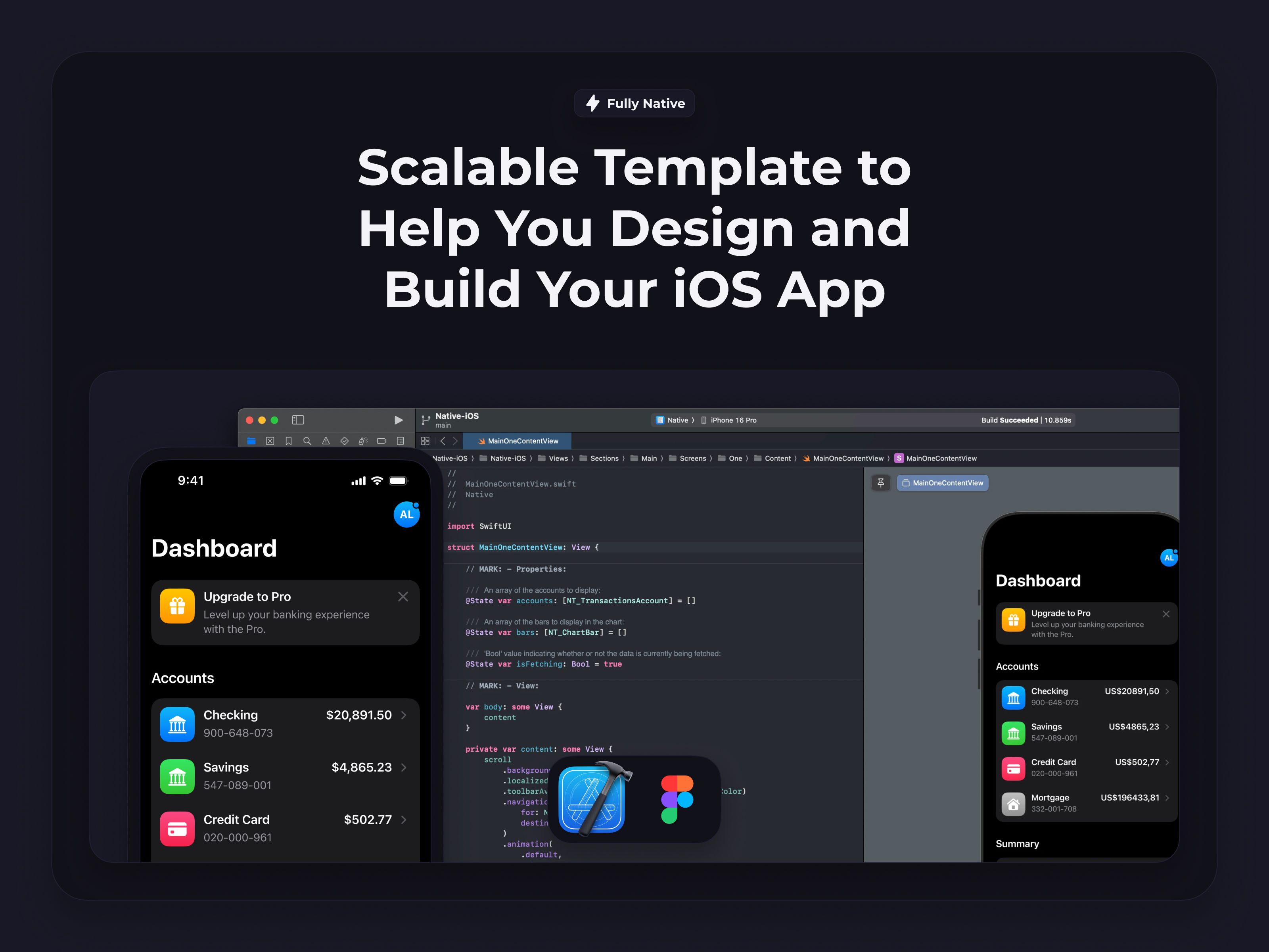 Welcome to Native Native is the multipurpose app template for iOS that was designed to help you launch your iOS app in no time at all. It offers coded screens with the design file for Figma included across 15 different categories, such as onboarding, paywall, main screen, file editing, data visualization, and more. All of the screens were designed with Apple's Human Interface Guidelines in mind to help you make your app feel right at home on any iOS device. We have built this template using SwiftUI, the latest and greatest first-party technology from Apple. With Native, you can supercharge your iOS app project with an extensive array of highly-customizable hand-crafted SwiftUI components that can be effortlessly reused. What You Will Get Xcode project with more than 100 unique screens and more than 60 different reusable components built with SwiftUIFigma design file with all of the screens in both light and dark modes, as well as the UI components library, styleguide, variants, auto layout, variables, and a lot more Questions and Support You can find the answers to some of the frequently asked questions here, but if you ever have any questions, you can always get in touch with us via email at [email protected] or by sending us a message on X/ Twitter. We are always happy to help! Apple, iOS, SwiftUI, and Xcode are trademarks of Apple Inc. We don’t have any affiliation with Apple Inc. Native iOS template is meant to be used only for the apps that run on the Apple's platforms. Xcode 16 and iOS 18 are required. Please also note that some of the elements that are used in the design of the Native iOS template weren't originally designed by us. This includes San Francisco font: developer.apple.com/fonts and SF Symbols icons: developer.apple.com/sf-symbols from Apple, as well as various system components in iOS that were originally designed by Apple that we have only recreated for the Native iOS template. By purchasing the Native iOS template, you acknowledge that you have read and agree to our terms of use.